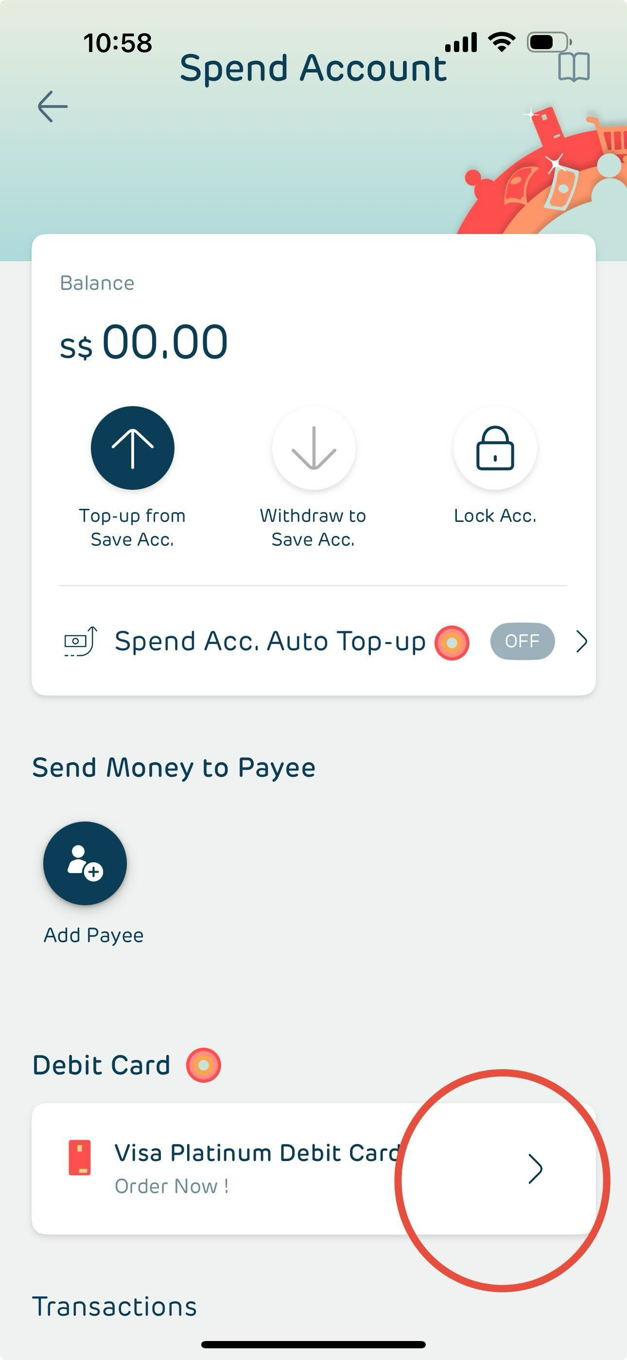 When you are on the Home screen click on the Spend Account banner.