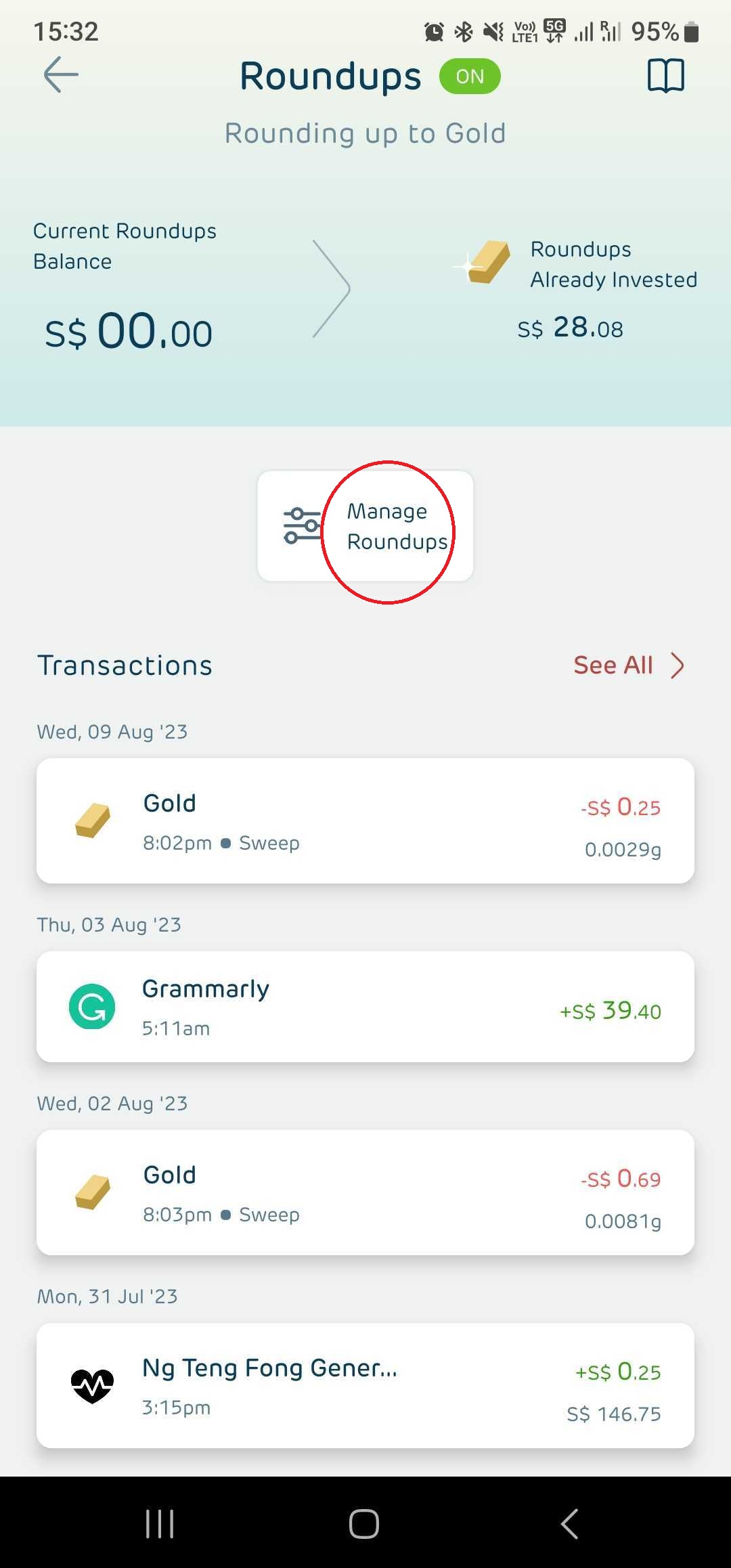 - Click on the Roundups button below the Invest portion on your Home screen.