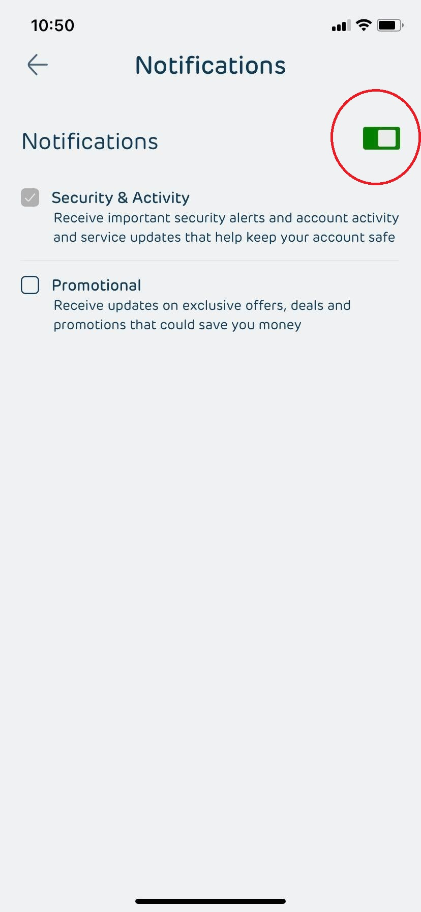 - You may toggle the Hugosave app Notifications on or off.