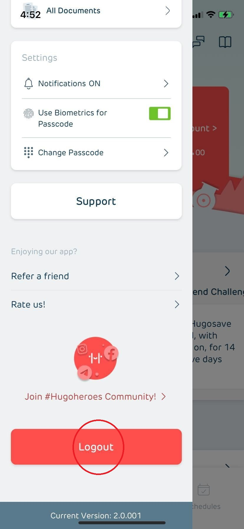 - Select the Logout tab. Following this you automatically be logged out from your Hugosave Account.